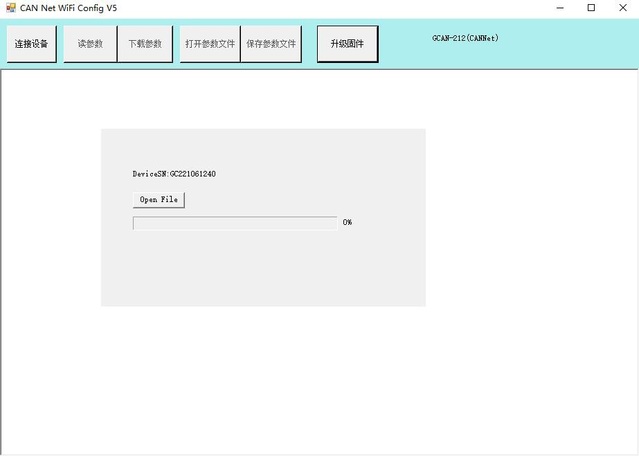設(shè)備使用前需要進(jìn)行參數(shù)配置。GCAN-212-W設(shè)備配置時(shí)只需連接電源并將以太網(wǎng)口連接至電腦即可。打開(kāi)CANet-Wifi-Config-V5軟件,設(shè)備類型選擇GCAN-212-W(CANNet),IP地址輸入GCAN-212-W的IP地址(默認(rèn)IP:192.168.1.10,恢復(fù)出廠設(shè)置詳見(jiàn)3.1.1)。