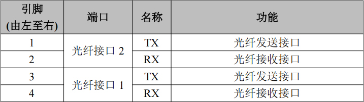 GCAN-208-2C模塊光纖接口位置、接口定義如圖2.6、表2.5所示。