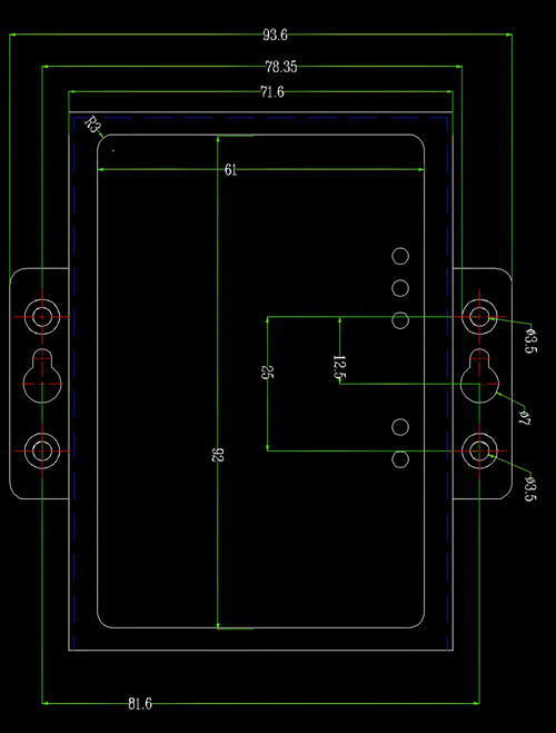 設(shè)備外形尺寸:(長(zhǎng),含接線端子)118mm*(寬)93mm*(高)22mm,其示意圖如圖2.1所示。