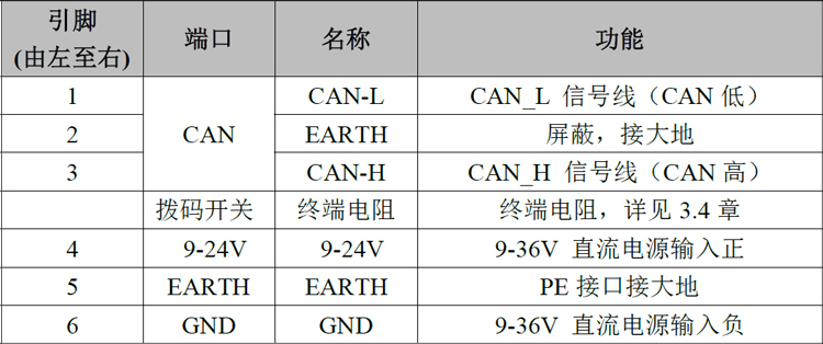 表2.4 GCAN-208-2-F模塊的CAN總線信號(hào)分配及電源接口
