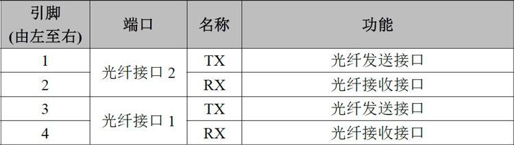 表2.5 GCAN-208-2-F光纖接口定義