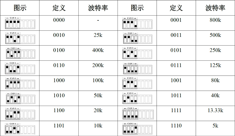 3.1.1通過撥碼開關(guān)配置CAN總線波特率