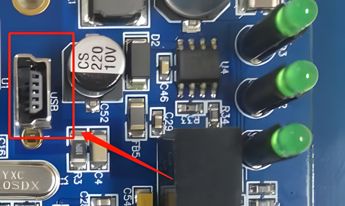 當(dāng)需知道當(dāng)前設(shè)備使用的波特率的值時(shí),先打開設(shè)備外殼(擰開兩側(cè)黑色螺絲即可)然后用USB線將設(shè)備的USB口和電腦連接上,USB口為USB-MINI口,如圖3.3所示。