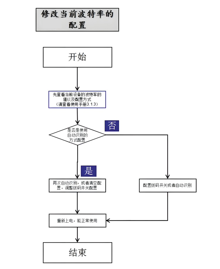 當(dāng)需要修改當(dāng)前設(shè)備的波特率時(shí),按照如下流程圖3.6所示操作即可。