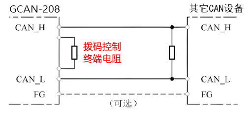 圖3.8 GCAN-208-2-F系列模塊與其他CAN節(jié)點(diǎn)設(shè)備連接