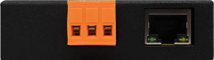 GCAN-212模塊(CANET-II)集成一路DC9-24V電源接口、2路標(biāo)準(zhǔn)CAN-bus接口、1路以太網(wǎng)接口。電源接口由一個(gè)3 PIN插拔式接線端子(橙色)引出,其接口位置及定義如下圖所示。