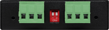 注意:廣成科技GCAN-212內(nèi)部已集成120Ω終端電阻,可通過撥碼開關(guān)選擇是否將電阻接入總線,撥碼開關(guān)在兩個(gè)3 Pin端子中間,2號(hào)開關(guān)控制CAN1對應(yīng)電阻,1號(hào)開關(guān)控制CAN2對應(yīng)電阻,撥到ON的位置即可將電阻啟用。