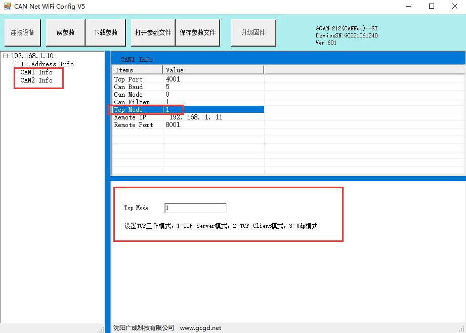 10 00 00 08 01 02 05 01 00 C0 A8 01 14可設(shè)置CAN1的目標(biāo)主機(jī)IP為192.168.1.20