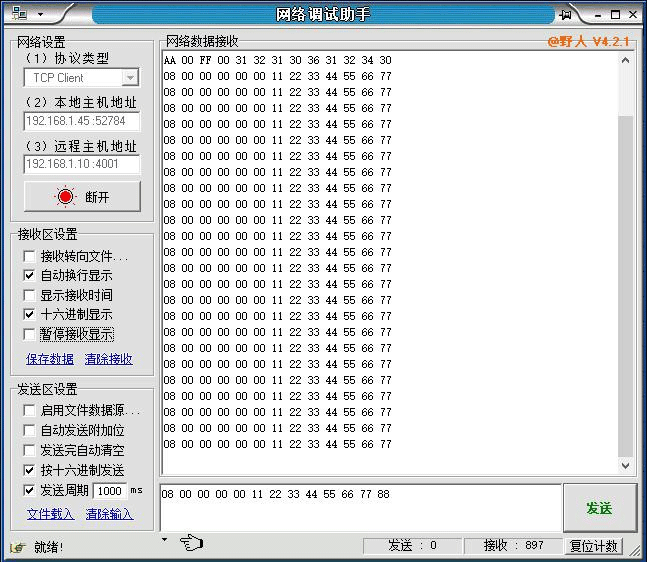 10 00 00 08 01 02 07 00 00 C0 A8 01 0A可設(shè)置本機(jī)的IP為192.168.1.10