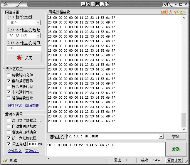 與發(fā)送數(shù)據(jù)相同數(shù)據(jù),表示發(fā)送數(shù)據(jù)成功,保存參數(shù)重啟后生效以太網(wǎng)端發(fā)送: