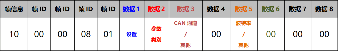 10 00 00 08 01 02 01 01 00 05 00 00 00可設(shè)置CAN1通道為250K
