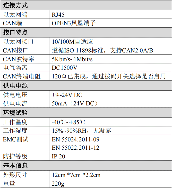 - 沈陽廣成科技GCAN-212以太網(wǎng)轉(zhuǎn)CAN轉(zhuǎn)換器的設(shè)備參數(shù)包括: