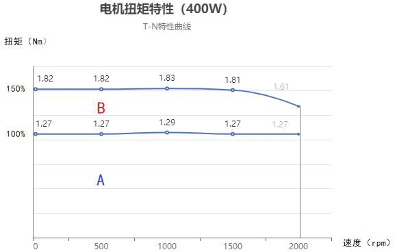 400W電機(jī)轉(zhuǎn)矩-轉(zhuǎn)速特性曲線: