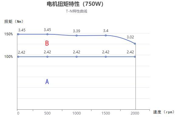 750W電機(jī)轉(zhuǎn)矩-轉(zhuǎn)速特性曲線: