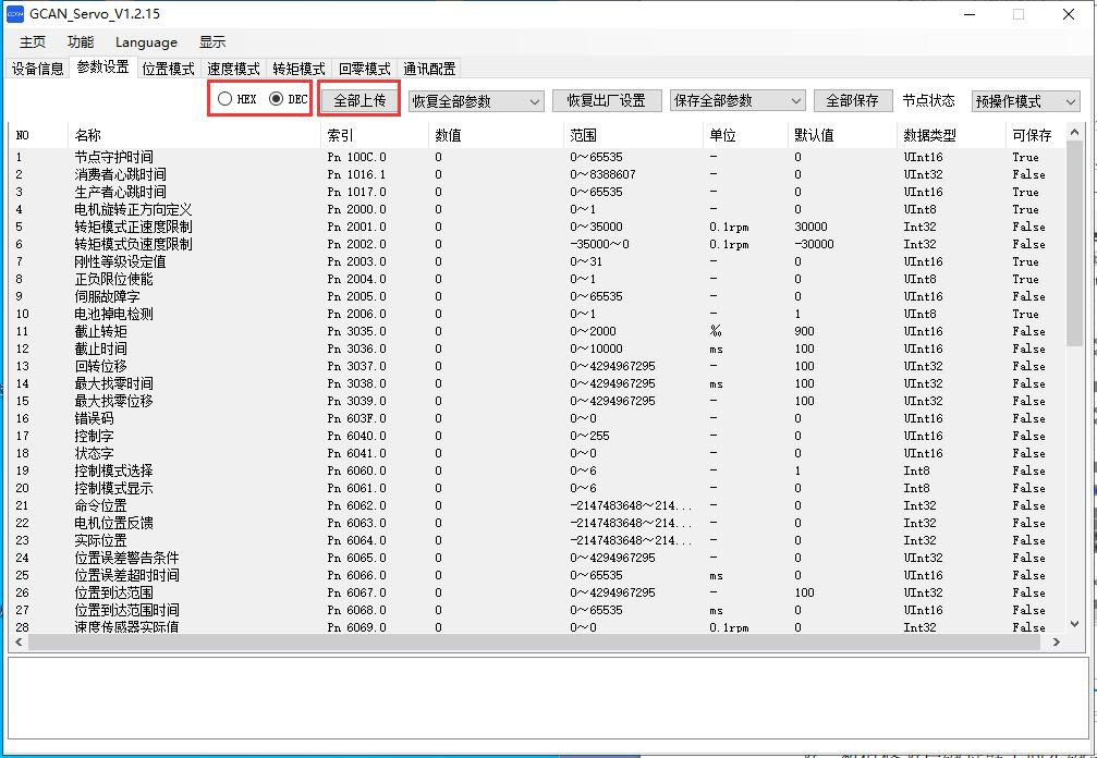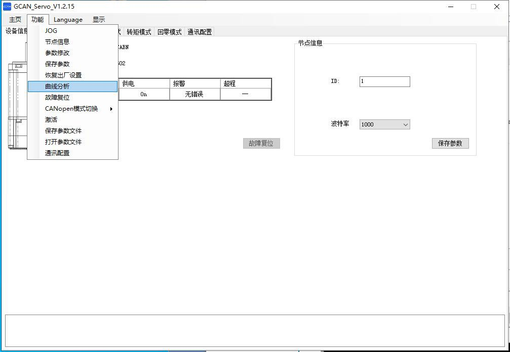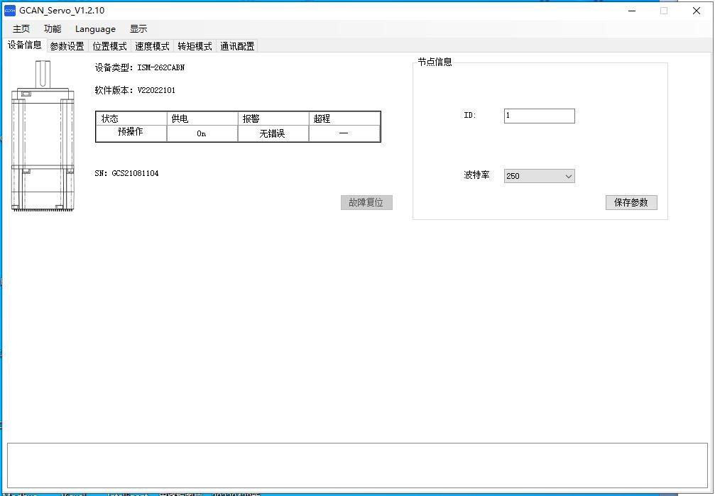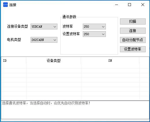 ● 下方設(shè)備信息欄:顯示掃描出的當(dāng)前總線中在線的伺服電機(jī)信息。