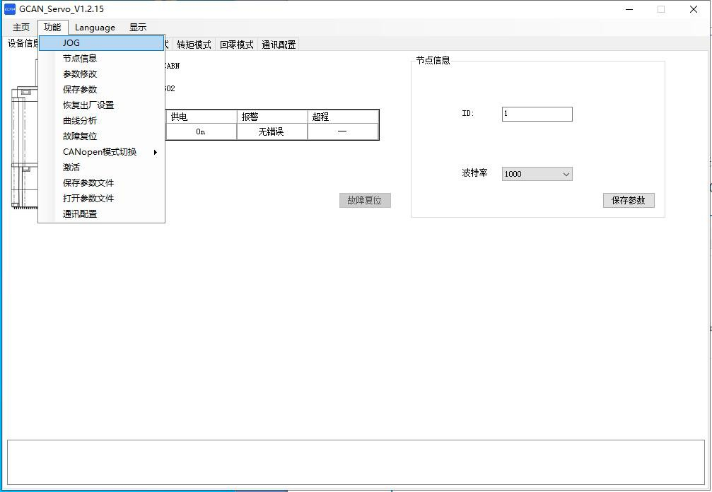● 狀態(tài):顯示當(dāng)前設(shè)備狀態(tài),包括(CANopen狀態(tài),供電狀態(tài),報(bào)警狀態(tài)和超程報(bào)警)。