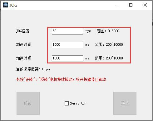 4、設(shè)置目標(biāo)速度:索引Pn 60FF.0輸入03 E8,單位0.1rpm,即轉(zhuǎn)速為1000*0.1rpm。