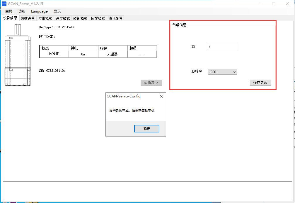 ● 通訊參數(shù):波特率:當(dāng)前在線的伺服電機(jī)CAN總線波特率。