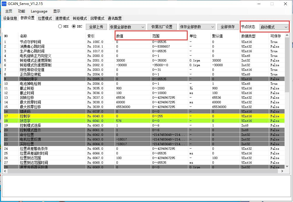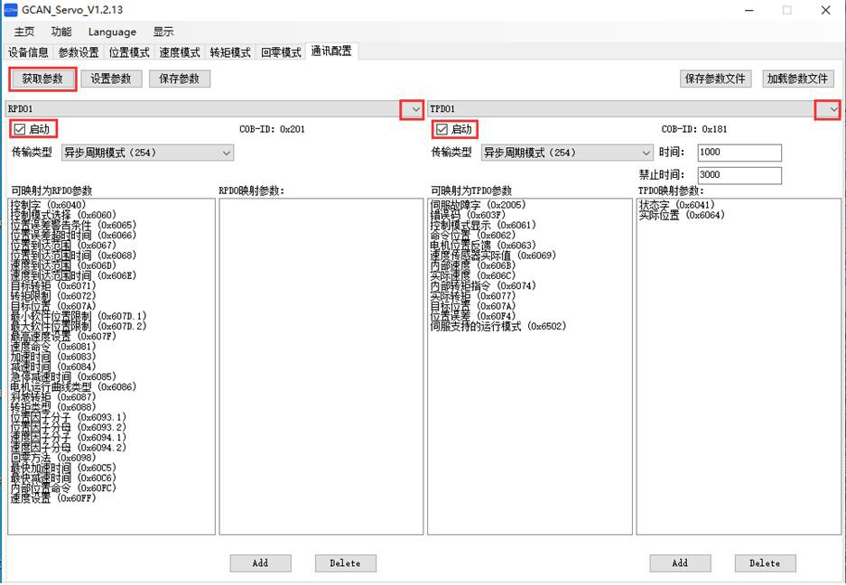 ● 掃描:掃描當(dāng)前CAN總線中在線的伺服電機(jī)。