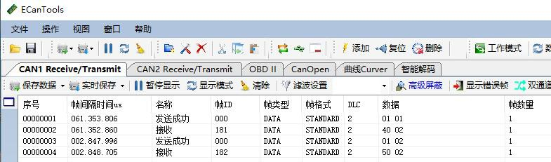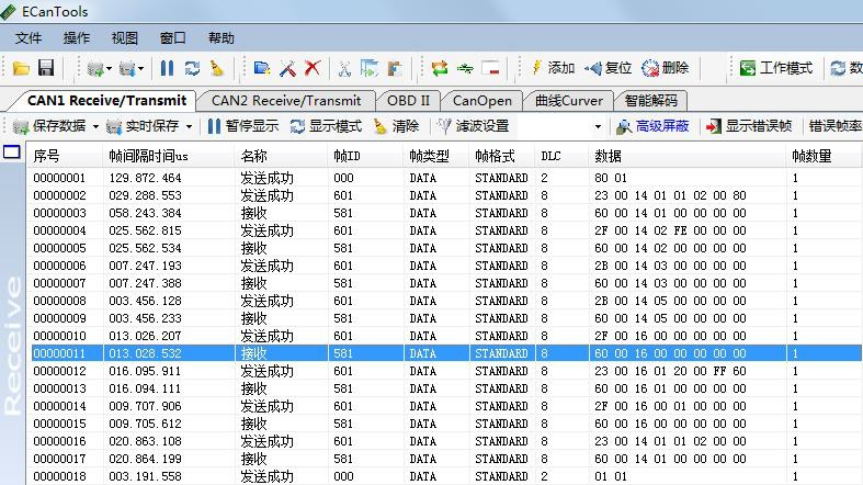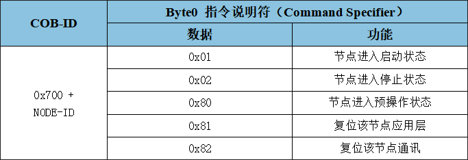 報(bào)文:ID:0x000數(shù)據(jù):01 01,設(shè)置CANopen進(jìn)入啟動(dòng)狀態(tài)。