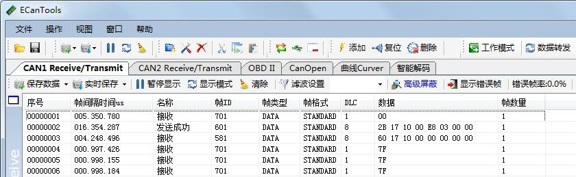 報(bào)文:ID:0x601數(shù)據(jù):2B 36 30 00 E8 03 00 00,設(shè)置截止時(shí)間為1000ms。
