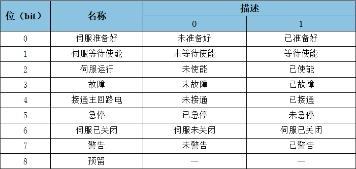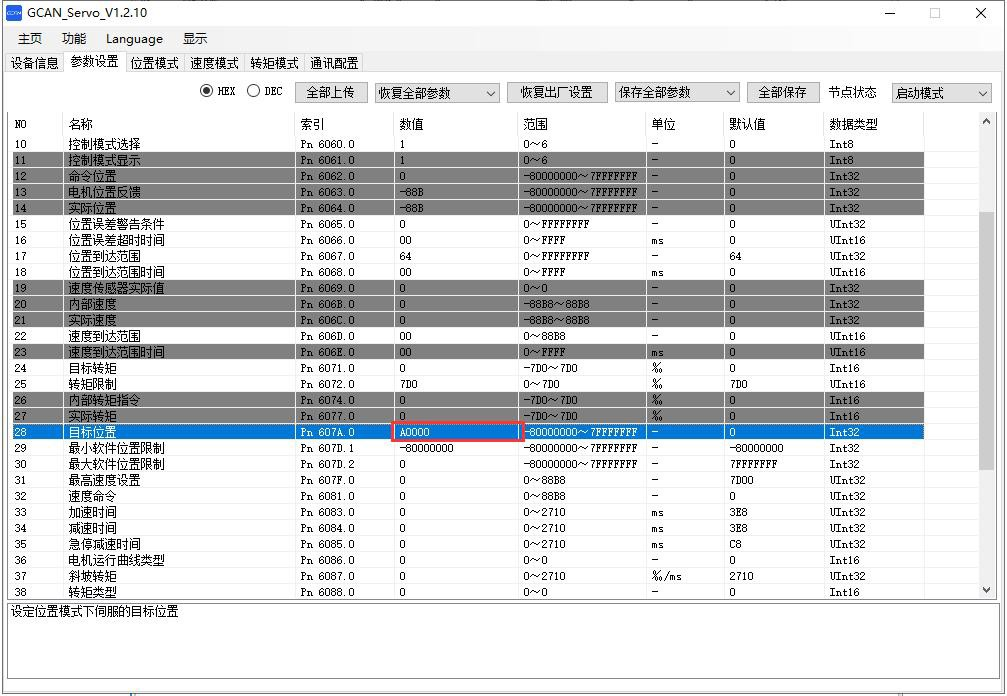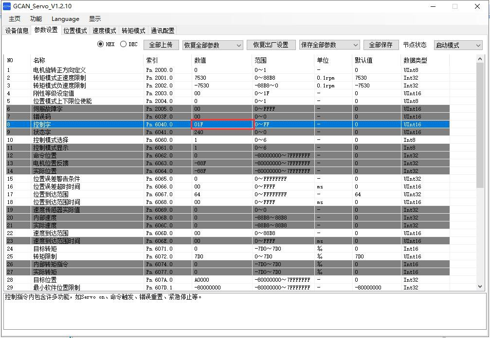 ● DevType:顯示當(dāng)前在線伺服電機(jī)類型。