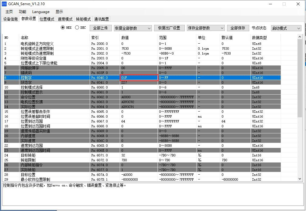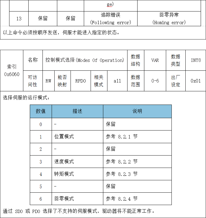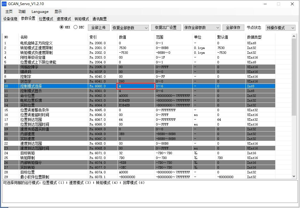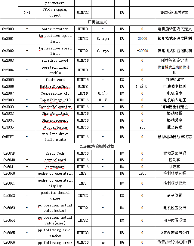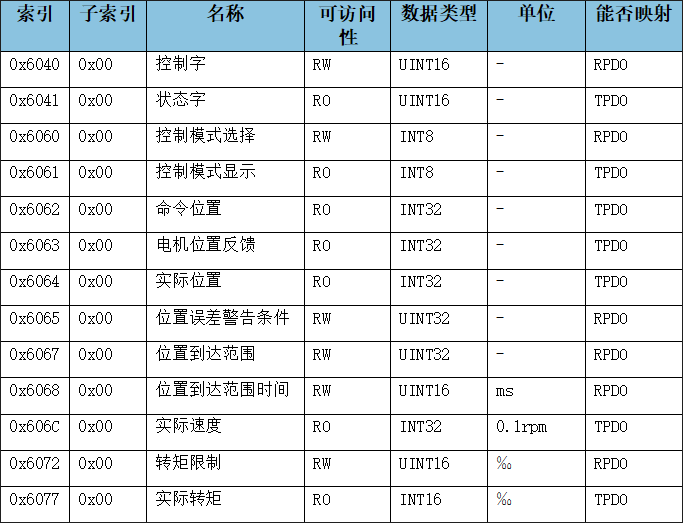 報(bào)文:ID:0x601數(shù)據(jù):2F 60 60 00 04 00 00 00,設(shè)置0x6060為4,設(shè)置運(yùn)行模式為轉(zhuǎn)矩模式。