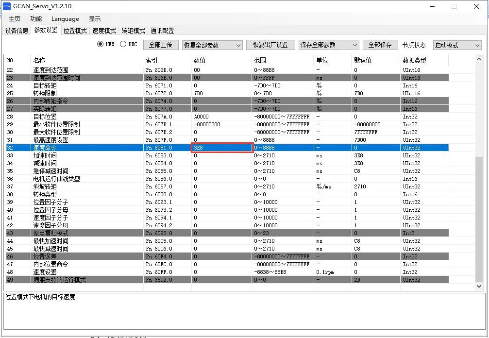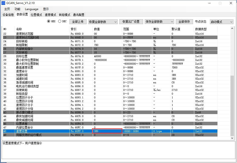 1、設(shè)置控制模式為速度模式:索引Pn 6060.0輸入03。