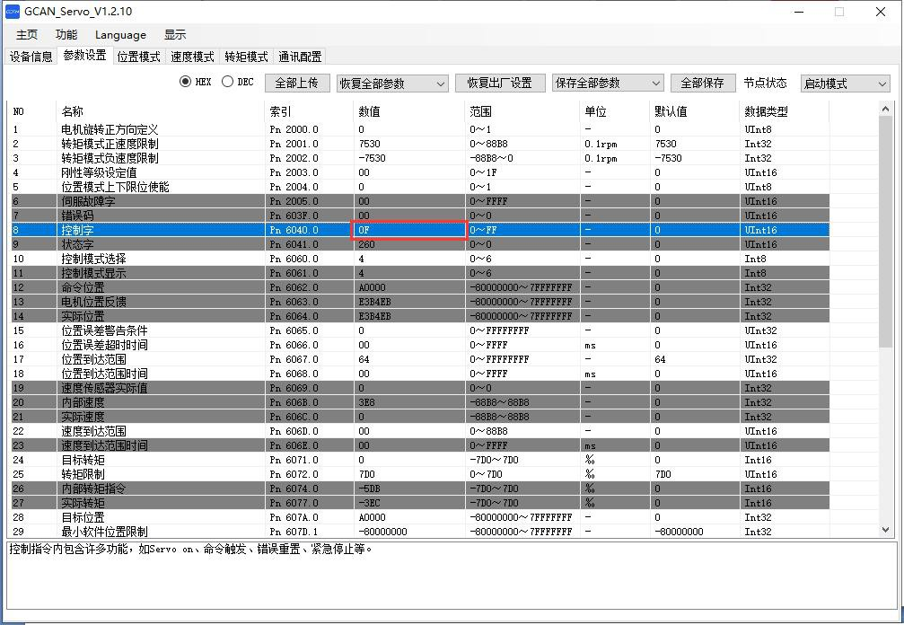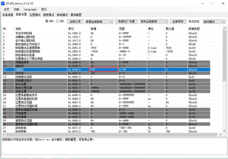 8、使能執(zhí)行:索引Pn 6040.0依次輸入0F,3F,使電機(jī)開始運(yùn)動(dòng)。