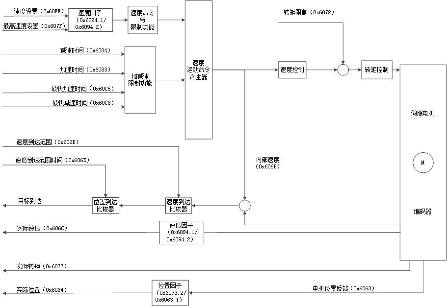 速度模式下,用戶給定速度、加速度、減速度后,伺服驅(qū)動(dòng)器可按此設(shè)定規(guī)劃電機(jī)的速度曲線,并實(shí)現(xiàn)不同速度指令間的平滑切換。