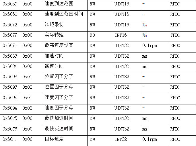 報(bào)文:ID:0x601數(shù)據(jù):2F 60 60 00 03 00 00 00,設(shè)置0x6060為3,設(shè)置運(yùn)行模式為速度模式。