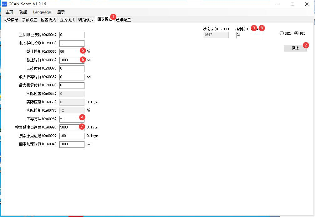 5、設(shè)置截至轉(zhuǎn)矩、截止時(shí)間、回零速度