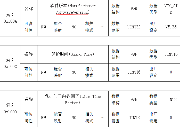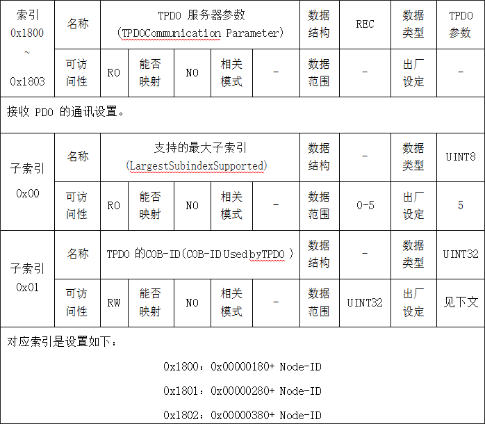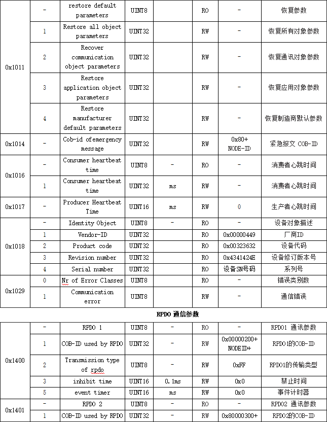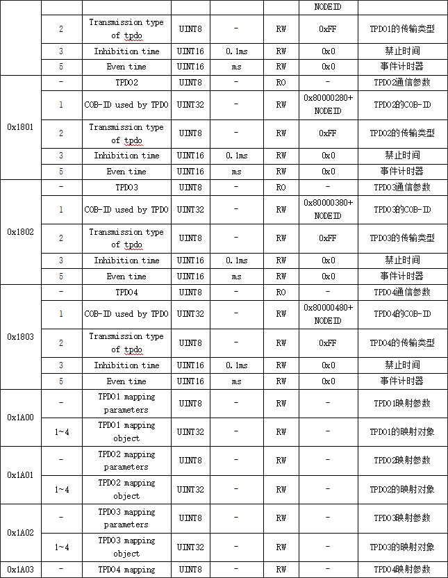 (1)對象字典0x1XXX通訊對象詳細(xì)說明