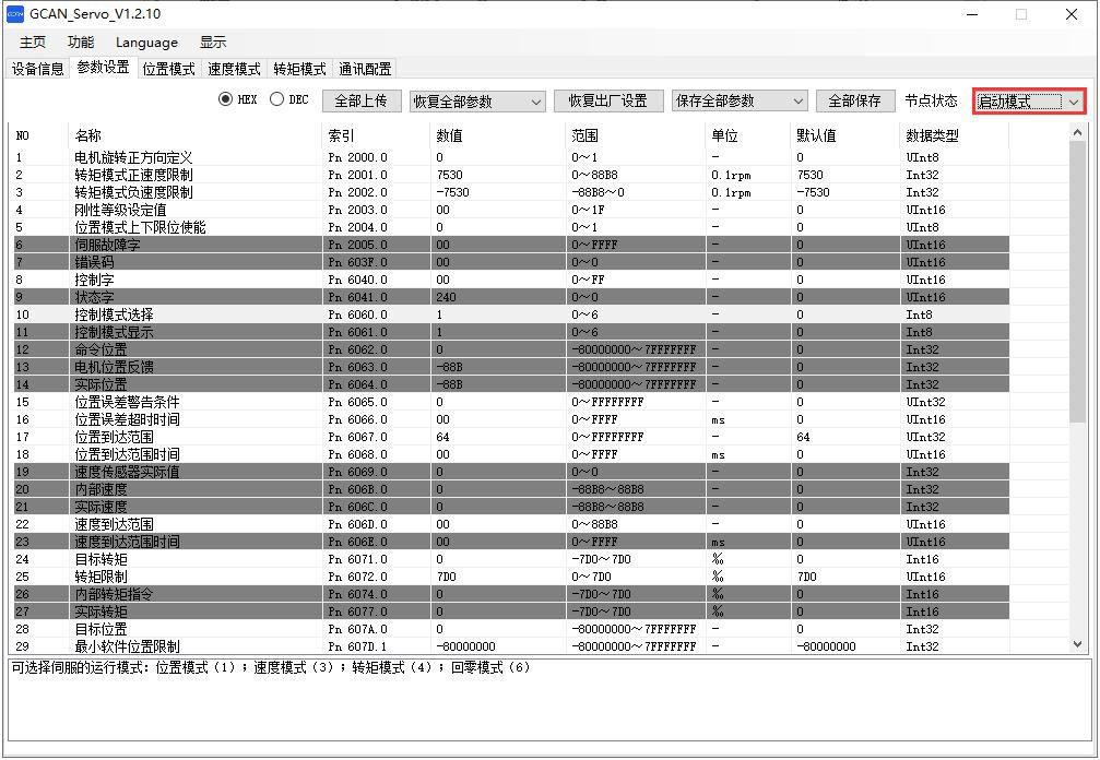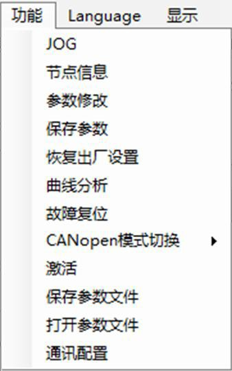● CANopen模式切換:CANopen模式切換:啟動(dòng)模式、停止模式、預(yù)操作模式、復(fù)位節(jié)點(diǎn)、復(fù)位通訊。