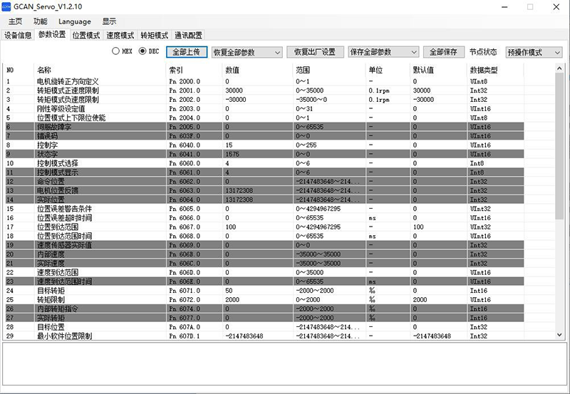 ● 設(shè)備信息:顯示掃描出的當(dāng)前總線中在線步進(jìn)電機(jī)信息。