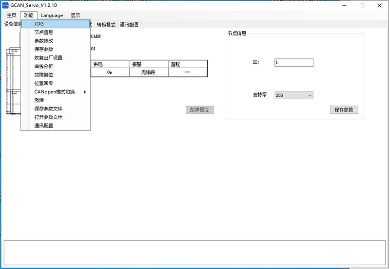 ● 狀態(tài):顯示當(dāng)前設(shè)備狀態(tài),包括(CANopen狀態(tài),供電狀態(tài),報(bào)警狀態(tài)和超程報(bào)警)。
