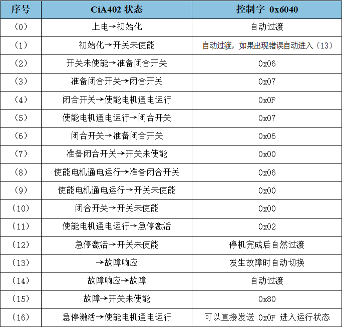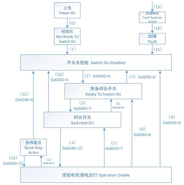 3、切換步進(jìn)電機(jī)狀態(tài)至Operation Enable狀態(tài):索引0x6040依次輸入06,07,15(非必要)。