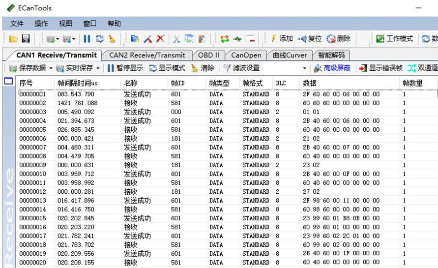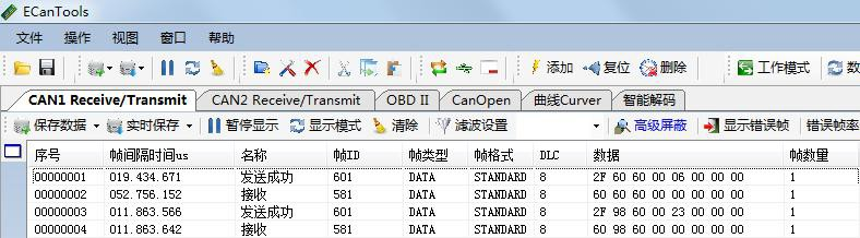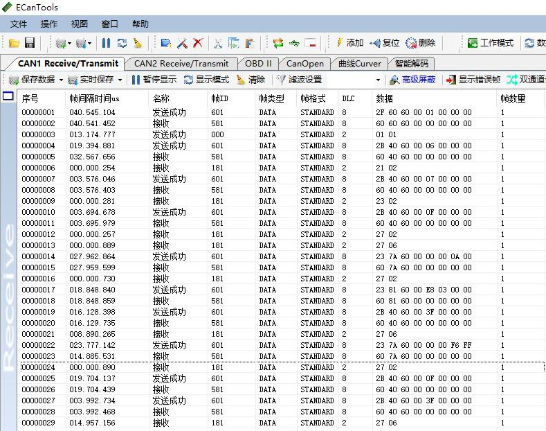 報(bào)文:ID:0x601數(shù)據(jù):2B 40 60 00 1F 00 00 00。