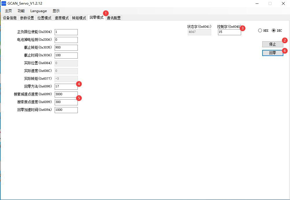 報(bào)文:ID:0x601數(shù)據(jù):2F 60 60 00 06 00 00 00,設(shè)置0x6060為6,設(shè)置運(yùn)行模式為回零模式。