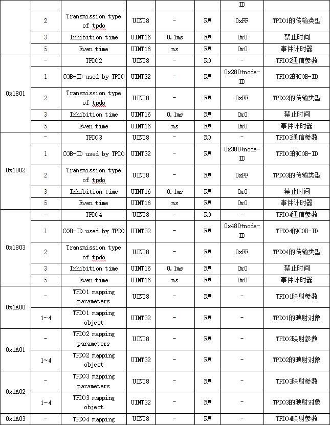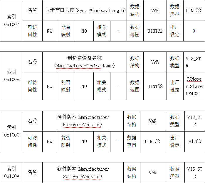 9.2.1對(duì)象字典0x1XXX通訊對(duì)象詳細(xì)說明