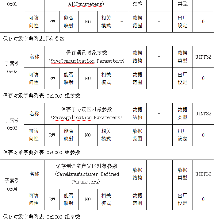 9.2.2對(duì)象字典0x2XXX,0x3XXX,0x5XXX自定義參數(shù)詳細(xì)說明
