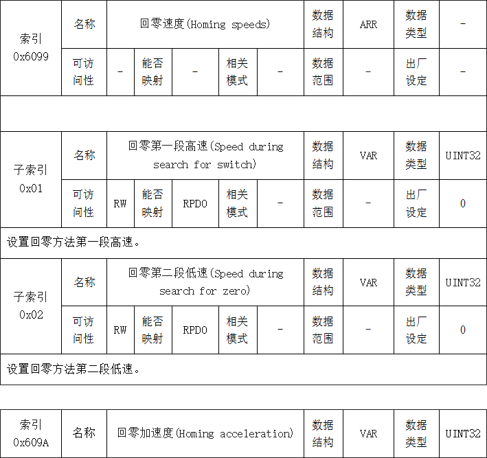 索引0x6099.1輸入3000,單位0.1rpm,即第一段高速轉(zhuǎn)速為3000*0.1rpm。索引0x6099.2輸入300,單位0.1rpm,即第二段低速轉(zhuǎn)速為300*0.1rpm。
