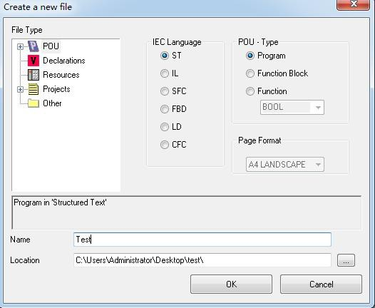 為項目添加文件(例如:添加ST語言編寫的程序頁ST,Program),如圖所示。