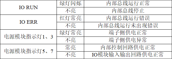 GCAN-PLC-510的正面突出區(qū)域包含6個圓形狀態(tài)指示燈。指示燈的具體指示功能見下表。指示燈處于不同狀態(tài)下時,GCAN-PLC-510的狀態(tài)如下表所示。