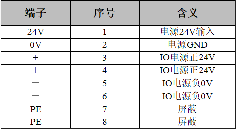GCAN-PLC-400的電源接線端子排如圖所示,其接口定義如下表所示。GCAN-PLC-400可編程邏輯控制器電源部分包含8個(gè)端子,需要注意的是:3號(hào)端子與4號(hào)端子之間、5號(hào)端子與6號(hào)端子之間、7號(hào)端子與8號(hào)端子之間,在模塊的內(nèi)部是相連的。