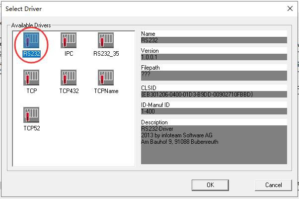 5、Driver中會(huì)顯示“RS232”字樣,點(diǎn)擊“Settings(設(shè)置)”按鈕。