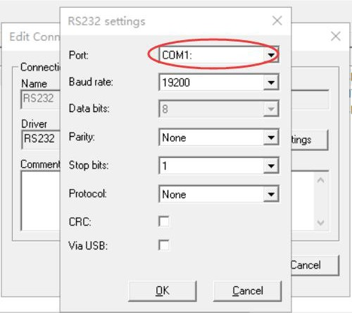6、Port(端口)請(qǐng)選擇USB-Enhanced-SERIAL-A對(duì)應(yīng)的端口,支持小于等于COM9,波特率固定為19200,設(shè)置好后點(diǎn)OK。