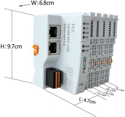 GCAN-PLC-320/321/322產(chǎn)品由一個(gè)可編程的主控模塊(GCAN-PLC-320/321/322等)、若干GC系列IO模塊(GC-1008、GC-3804等)以及一個(gè)終端電阻模塊(GC-0001)組成。GCAN-PLC-320/321/322主控模塊可連接所有的GC系列IO模塊,用戶可根據(jù)現(xiàn)場(chǎng)實(shí)際需求自行選擇擴(kuò)展IO模塊。