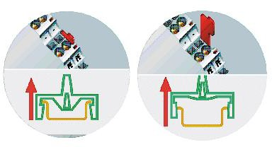 請(qǐng)按上圖所示,把GCAN-PLC-320/321/322安裝在導(dǎo)軌上,直到卡扣卡緊發(fā)出“咔”的聲音。之后您需要逆時(shí)針旋轉(zhuǎn)控制器外殼左端的橙色旋鈕,將控制器的左端牢固地固定在導(dǎo)軌上。GCAN-PLC-320/321/322具有自鎖機(jī)制,可有效防止設(shè)備掉落,如上圖所示。您可以拉拽橙色拉桿帶動(dòng)卡扣松動(dòng)后將控制器及IO模塊從導(dǎo)軌上取下,橙色拉桿拉動(dòng)分為兩個(gè)階段,第一次拉動(dòng)只是將拉桿拽出,在拉出后繼續(xù)拽動(dòng)會(huì)感受到明顯的阻力,這個(gè)時(shí)候才會(huì)松動(dòng)卡扣。取下控制器之前,您需要順時(shí)針旋轉(zhuǎn)控制器外殼左端的橙色旋鈕,解除鎖定狀態(tài)。
