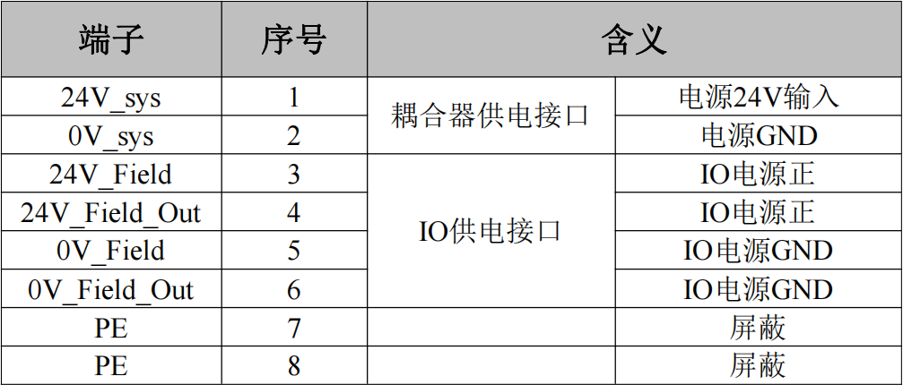 表2.1 GCAN-PLC-530的總線與控制器電源接口定義